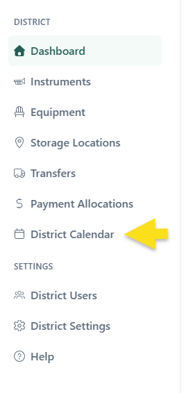 Go to the District Settings Page to see more options for your district's instrument inventory.