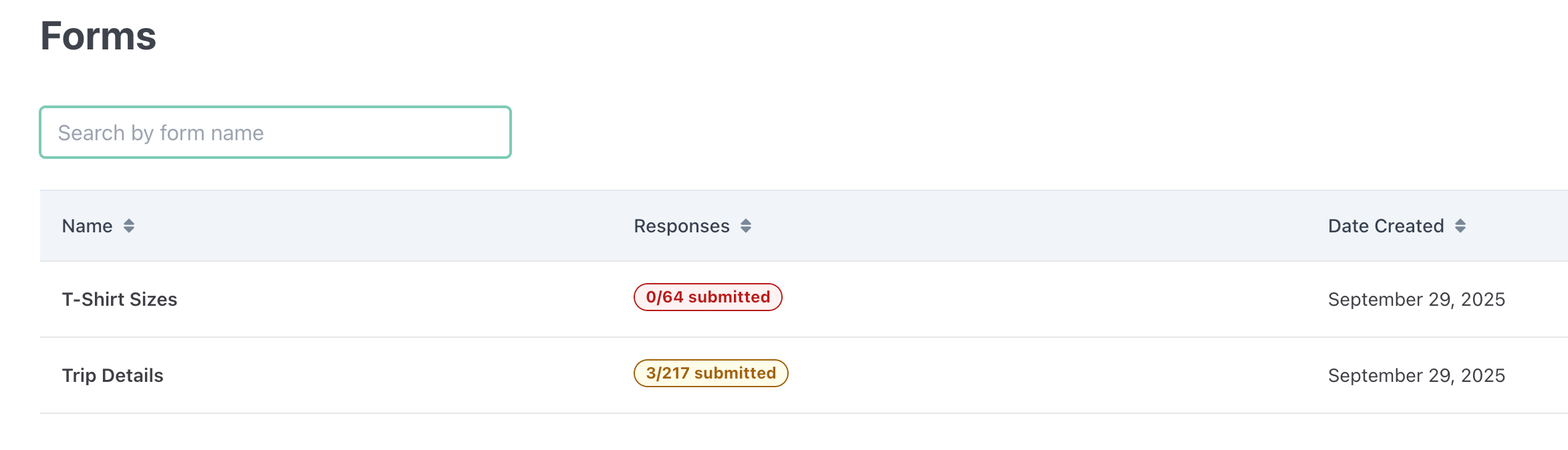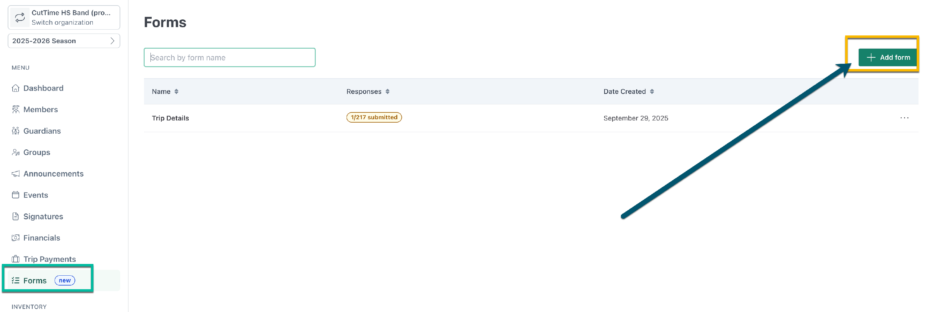 Should you need to collect other pieces of data from your members/guardians that are not already included on their profiles, you can create a Custom Form. This can be for whatever you need such as information pertaining to an upcoming trip, or t-shirt size. Utilize this feature in lieu of having them fill out a PDF or hand written document, that way you can pull an extract with the results of each form to pass onto the appropriate parties.