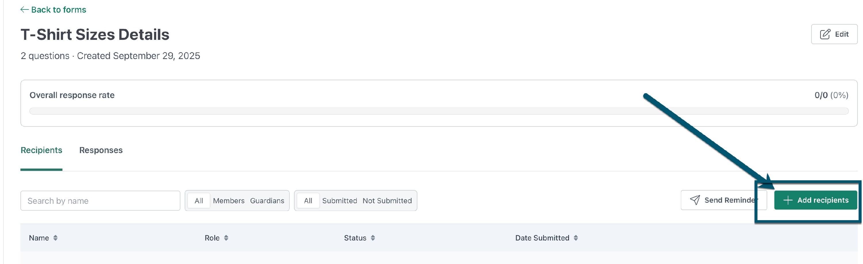 Click the "Add Recipients" button to choose through your list of members and guardians.