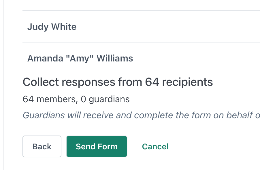 Click next and review your list of recipients. If anyone needs to be taken off the list of recipients, click the "remove" button. Then click "Send Form".