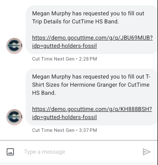 If you receive a notification from CutTime that says your program administrator is requesting you to fill out a form, you can click through on the link to begin answering those questions.