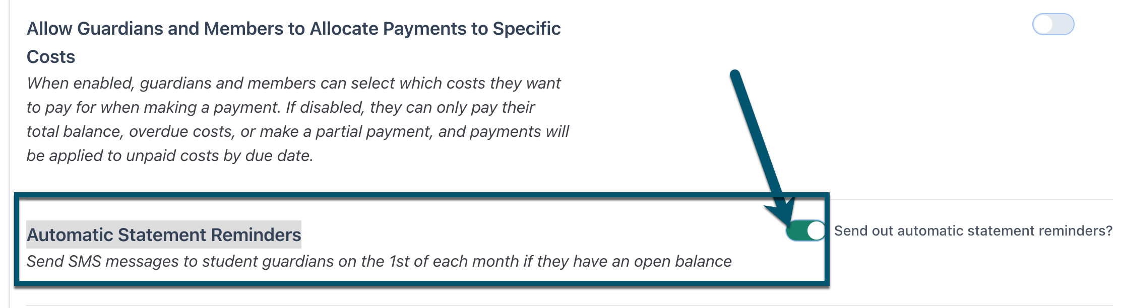 On the first of the month, CutTime automatically sends out an "automated statement reminder" to Guardians who have an open balance on their student's account.
