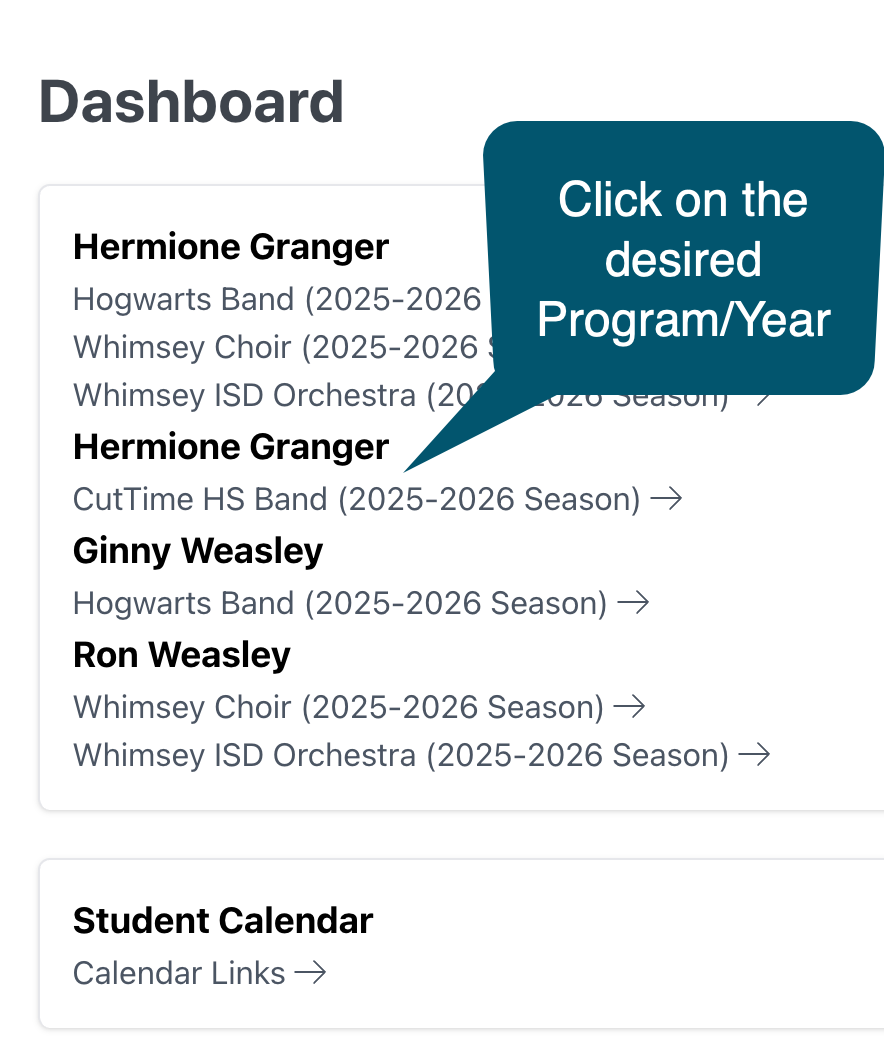Log in by clicking your Magic Link from your SMS messaging app or email inbox and navigate to your My Students Dashboard.