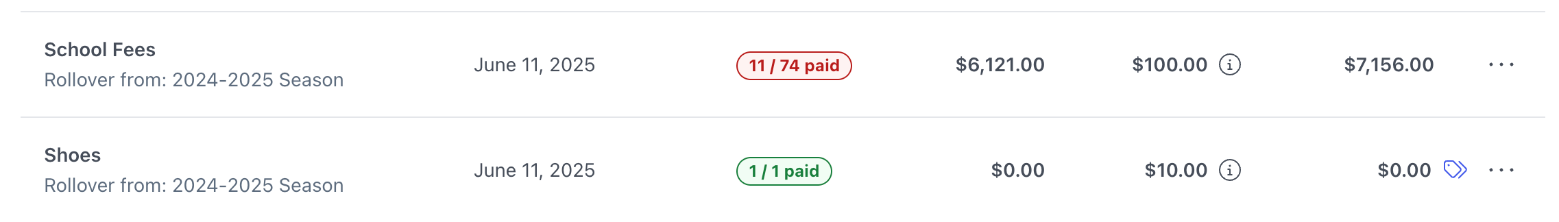 Roll over costs are created by the system during the season wrap up if you have made a choice to carry forward balances owed. These costs were considered unpaid by the members assigned at the time of the Season Wrap Up, and so they are carried forward in order to collect the remaining balance.