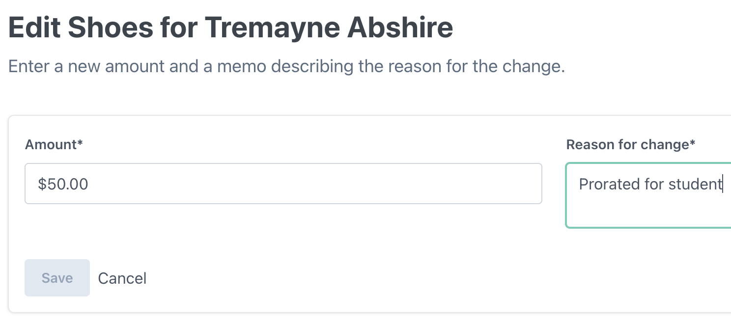 - Adjust the "Amount" to $0 and add a reason for this change for your records.